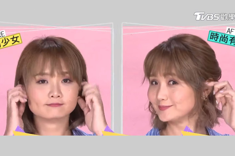 這種慵懶的公主頭,如果剩下的頭髮直直塌塌的會顯得有點搞笑,所以其餘的頭髮也用板夾夾出自然彎度。最後,瀏海做出空氣瀏海的感覺,將瀏海向後順著夾,製造瀏海的輕盈線條感,慵懶的公主頭就大功告成啦!