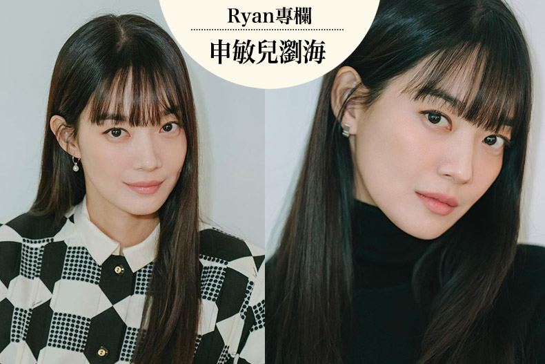 先來看看申敏兒最新的瀏海造型吧!Ryan老師解析,有別以往齊瀏海總是厚重的印象,申敏兒的齊瀏海偏薄、看起來更輕盈有氣質,而且露出了部分額頭,視覺得以往上延伸,對臉型修飾效果較好,瀏海本身也沒有太多彎度,搭配長直髮顯得更簡約有個性。Ryan老師說:「今年的髮型流行直順感,所以申敏兒這款瀏海沒有刻意夾彎,看起來自然又有減齡效果,但如果不想要每天髮型都一樣,我們可以用平板夾做一些變化。」