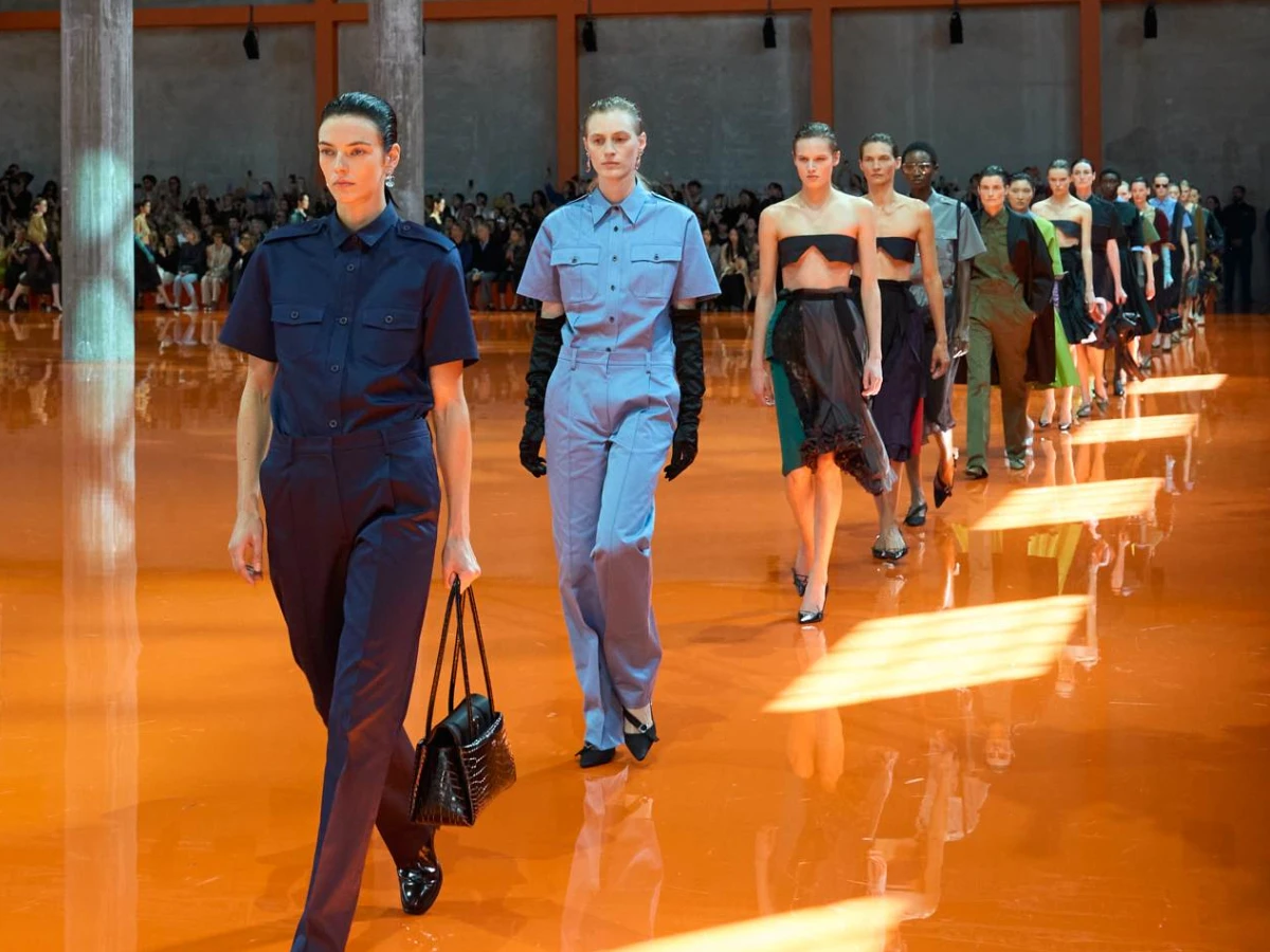 這是一場對服裝的剖析。單品掙脫看似固有的階層束縛,於精準的和諧對比中重獲新生,Prada 制服與晚禮服並駕齊驅,透過非傳統方式結合典型女性意象,重新演繹出一種嶄新的優雅。