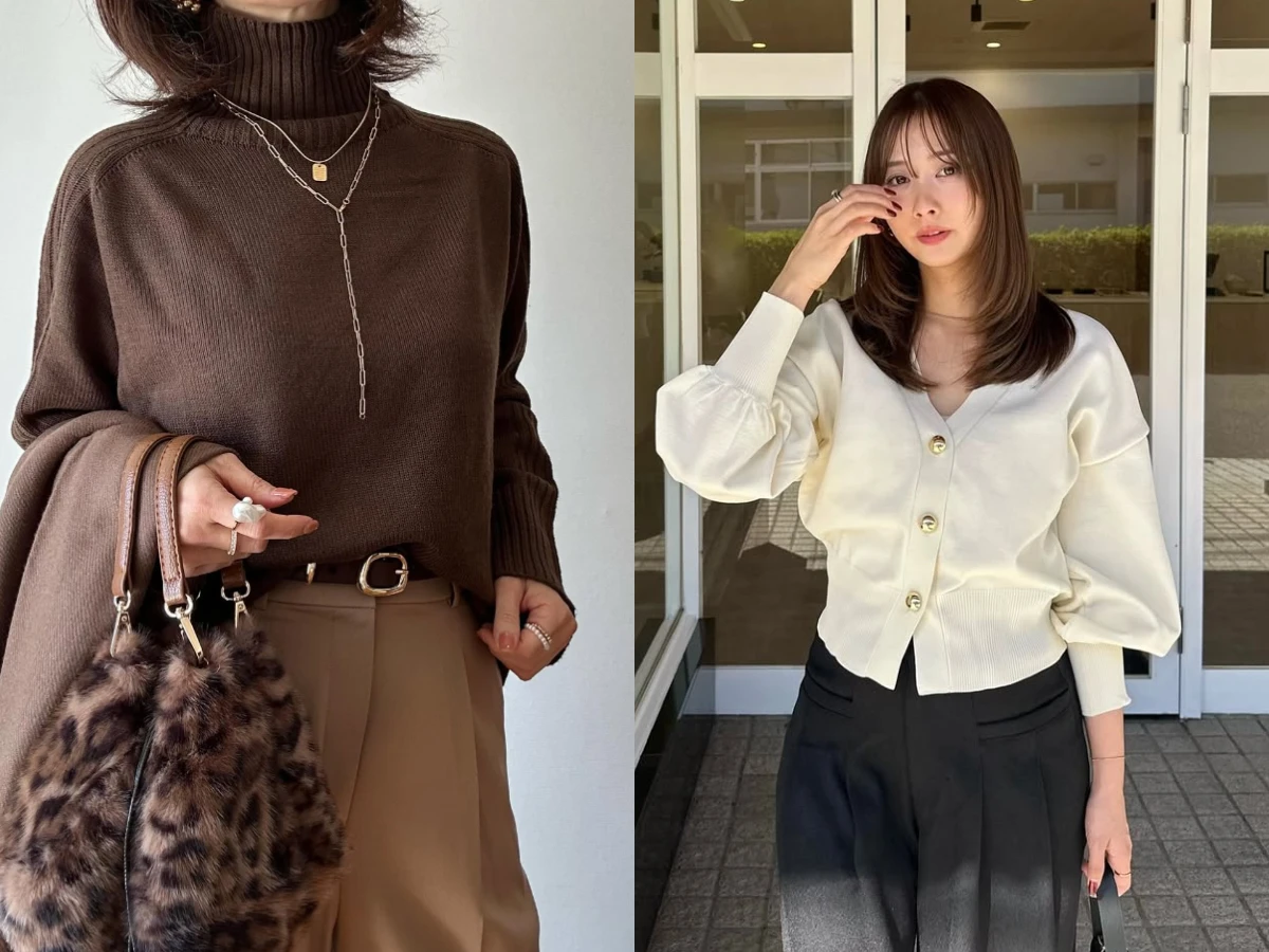 相較於過去基本的黑色、藍色、灰色這類的針織衫,大澤認為~選擇「亮色款」會更能打造出好氣色,無論披在肩上,或是斜掛並打結,都能讓造型更有型,微涼時選擇薄、輕盈的材質;天氣變冷後則改成具有保暖性的羊毛或厚針織材質,就能清楚表現季節感,從早晚溫差來看,對體溫調節也非常實用。