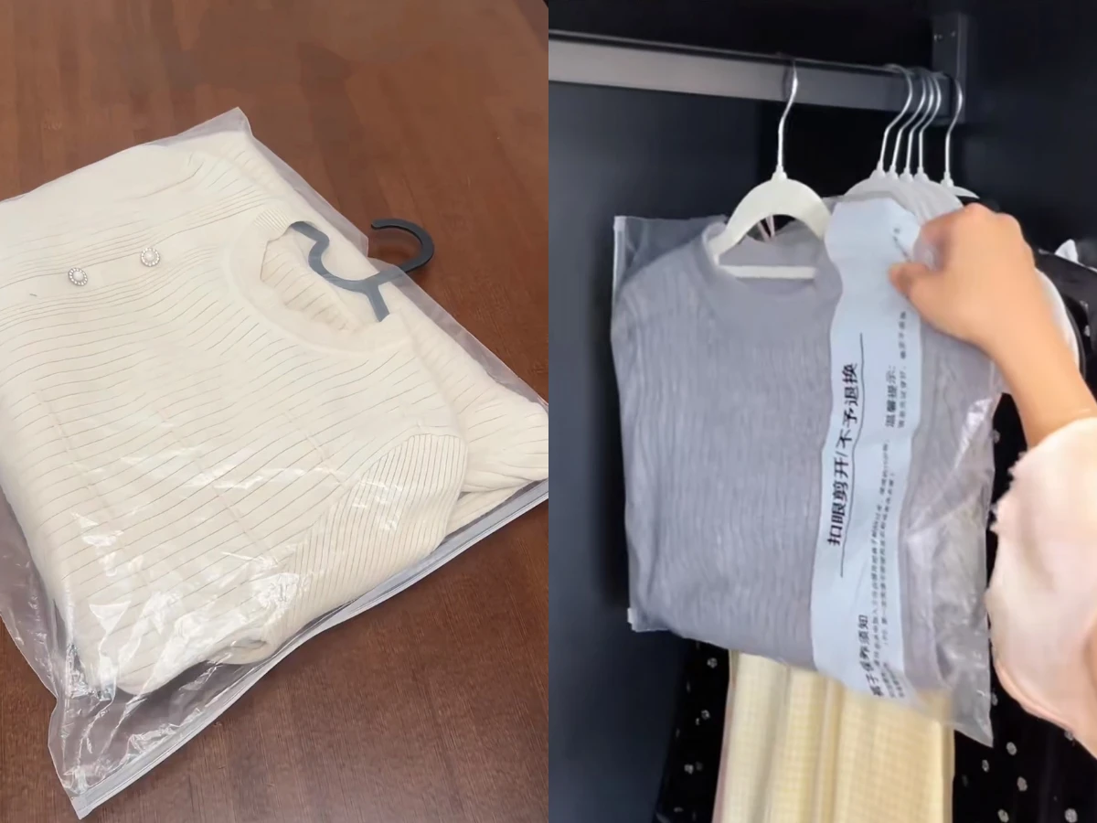 網友們紛紛分享,當拿到拉鍊、夾鏈這類有點厚度的塑膠袋,一定要記得收起來!因為它就是最好的衣服防塵袋~這裡的防塵袋,尺存建議是大型或是中型的款式,太小會沒有辦法裝進較厚重的衣服。