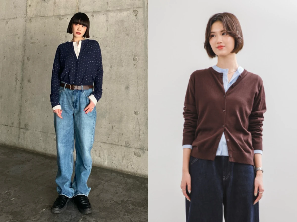 棕色給人溫潤穩定的感覺,搭配天藍色則能注入清爽氣息,讓整體不顯沉重。UNIQLO 也特別點名,本季針織單品的疊穿是重點趨勢,可以嘗試將兩件不同顏色的針織外套做層次搭配,並把上方釦子微微解開,製造自然垂墜的線條感,視覺上立刻多了層次。